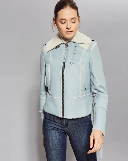 Blouson en Peau Lainee Yvonn bleu ciel
