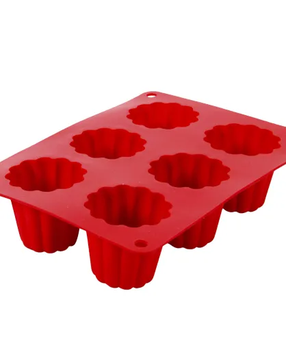 6 moules en silicone cannelés rouge - 20.5x15x4.5 cm