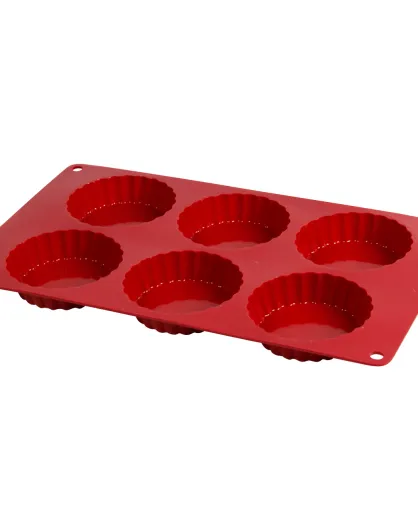 Moule 6 tartelettes en silicone rouge - 29x17x2 cm