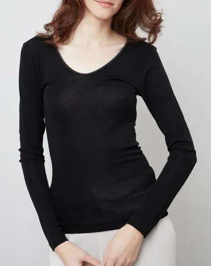 Top manches longues Laine et Soie noir