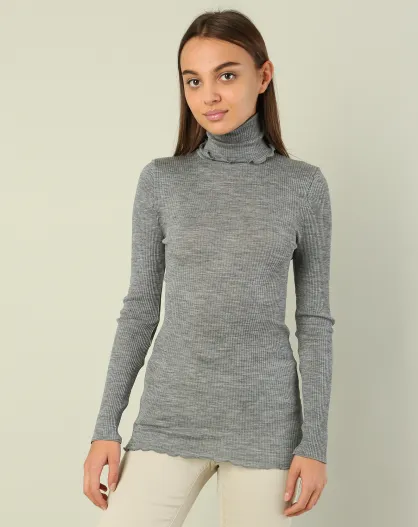 Top col roule laine et soie gris