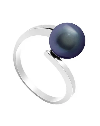Bague Jonc Croisé Argent Perle d'eau douce noire