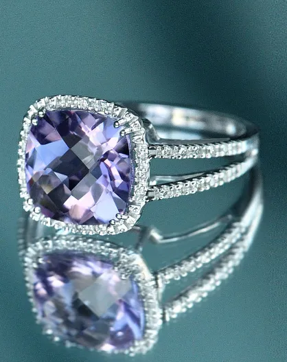 Bague Divine Améthyste 4 ct diamants 0.1 ct or blanc