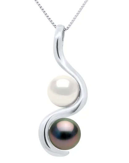 Collier Talisman Toi & Moi Argent Perles d'Eau Douce blanc/noir