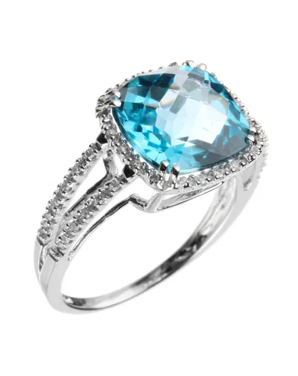 Bague Divine Topaze Diamants 0.1 ct Topaze 5.3 cts or blanc