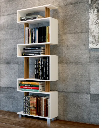 Bibliothèque blok blanc/bois - 60x20x160 cm