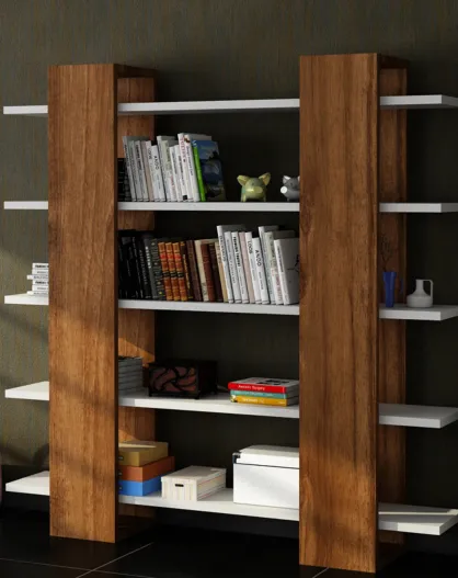 Bibliothèque Pool blanc/bois - 120x19.5x120 cm