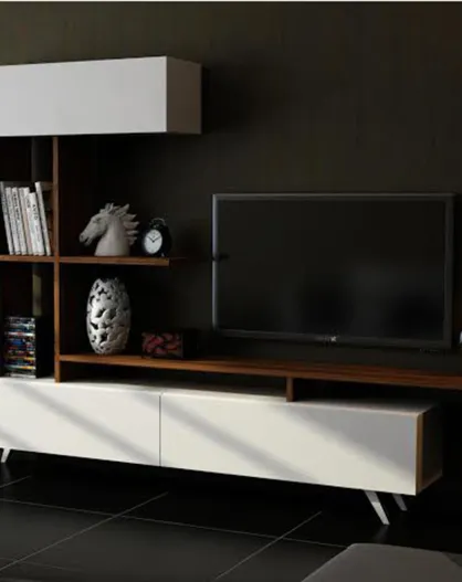Meuble TV Violet blanc/bois - 180x32x180 cm