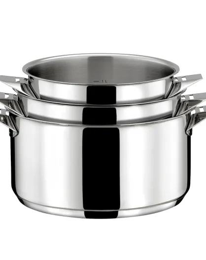 3 Casseroles & 1 poignée amovible Eclipse en inox à induction - D.16/18/20 cm