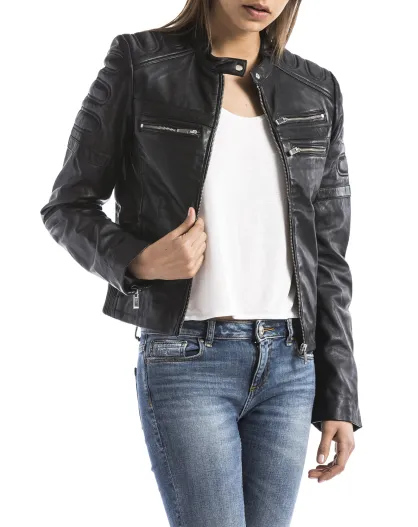 Veste en Cuir Capucine noire