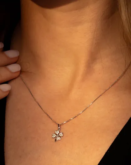 Pendentif Petit Trèfle or blanc