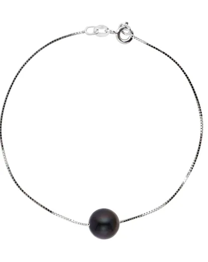Bracelet Ariane Argent Perle d'Eau Douce noire 9-10 mm
