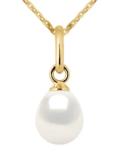 Collier Or Jaune Perle d'Eau Douce blanche