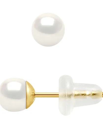 Boucles d'oreilles Or Jaune & Perles d'Eau Douce blanches
