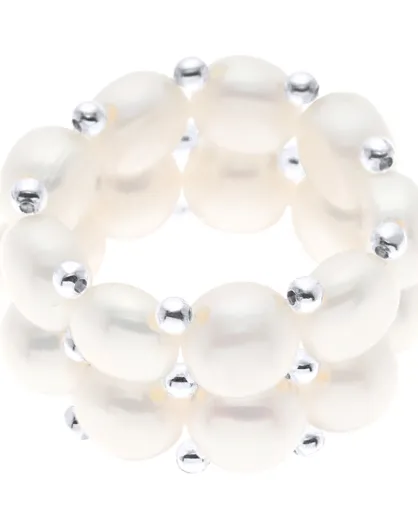 Bague élastique 2 rangs Perles d'Eau Douce blanches