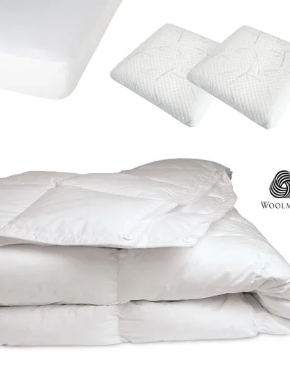 Pack 4 pièces blanc : 2 Oreillers + Protège-Matelas + Couette - 180x200 cm