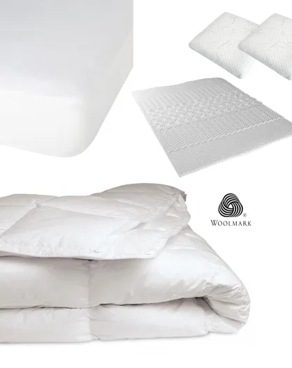 Pack 5 pièces : 2 Oreillers + Protège-Matelas + Couette + Surmatelas - 160x200 cm