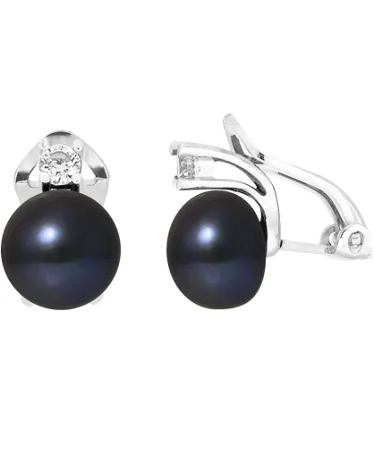 Boucles d'oreilles Argent Perles de Tahiti noires 8 mm