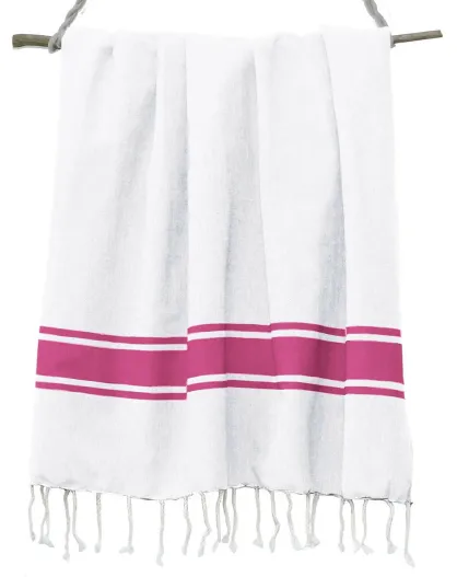 Fouta Traditionelle St Tropez blanc/rose fuschia - 100x200 cm