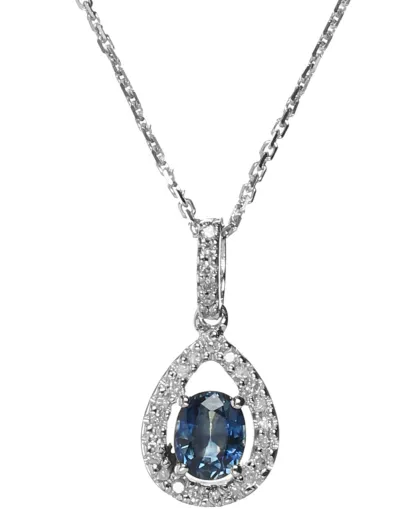 Pendentif Larme Bleu Nuit Diamants 0.08 ct Saphir 0.31 ct or blanc