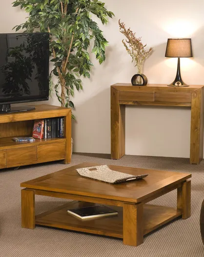 Table basse avec sous plateau miel - D.90xH.32 cm