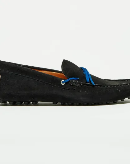 Mocassins en Velours de Cuir Miguel noir/bleu