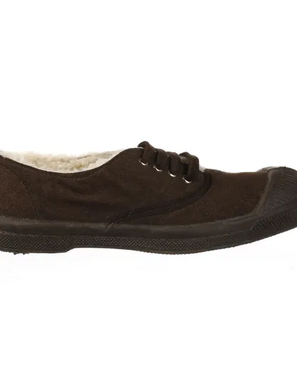 Tennis basses Fourrées lacets marron