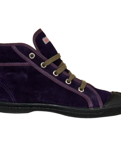 Tennis montantes en velours de Cuir Mid lacets violettes
