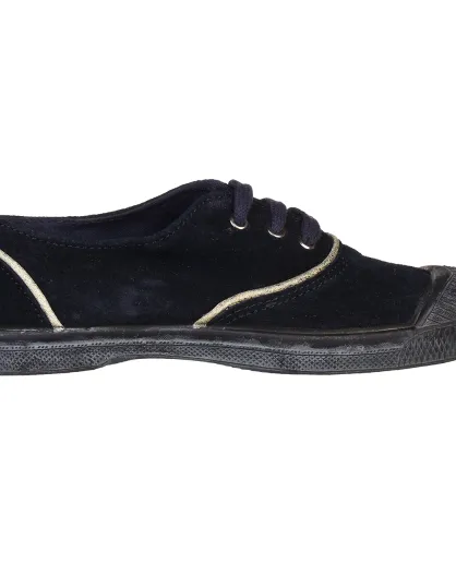 Tennis basses en Velours de Cuir Suedpiping lacets marine