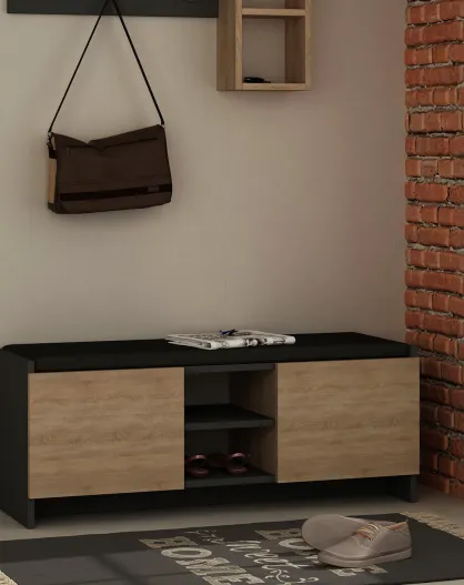 Meuble à chaussures zulla anthracite/naturel - 37x110x43 cm