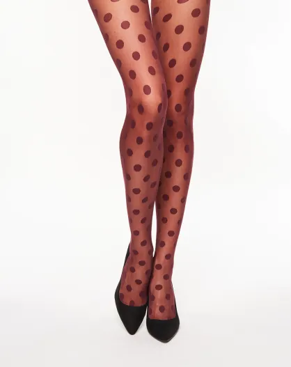 Collants Couture Légendaire 20 deniers à pois bordeaux