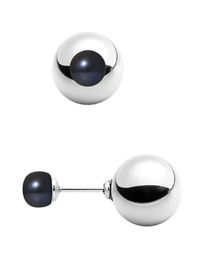 Boucles d'oreilles Recto verso Argent Perles d'Eau Douce noires