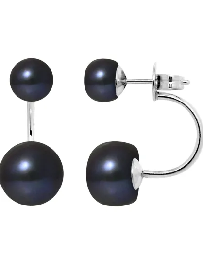 Boucles d'oreilles Duo Argent Perles d'Eau Douce noires
