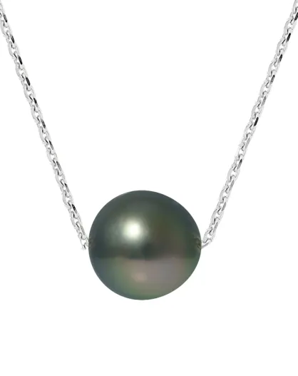 Collier Argent & Perle de Culture de Tahiti Ronde noire
