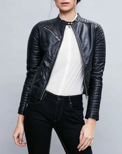 Veste en Cuir Alessia noire