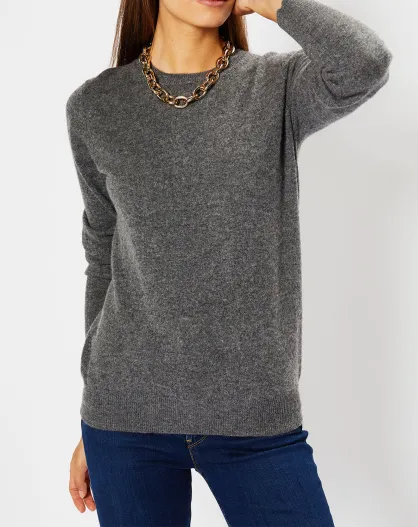 Pull 100% Cachemire Fabri col rond gris foncé