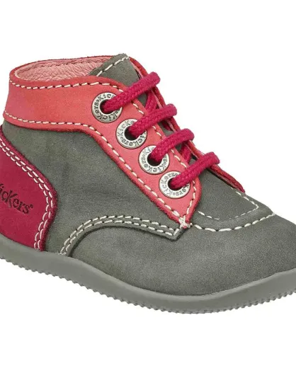 Bottillons en Velours de Cuir Bonbon gris/rose/fuschia