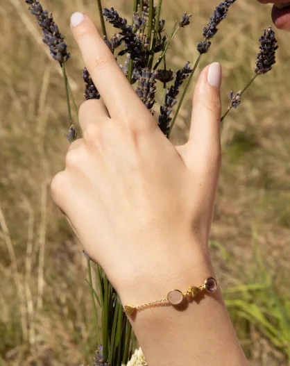 Bracelet Augustine Quartz, Aqua Calci & Améthyste en laiton doré