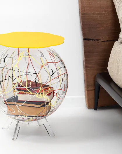 Meuble déco rangement arty jaune/multicolore - D.40xH.55 cm