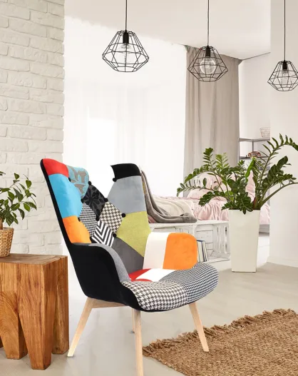 Fauteuil Helsinki patchwork multicolore - 47.5x54x86 cm