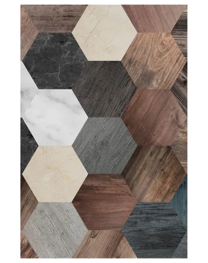 Tapis vinyle Hexagone bois/marbre - 50x140 cm