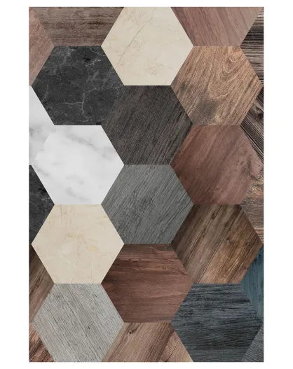 Tapis vinyle Hexagone bois/marbre - 66x150 cm