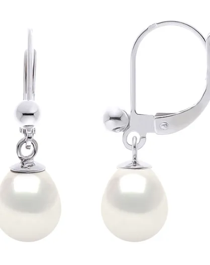 Boucles d'oreilles Poire Argent & Perles d'Eau Douce blanches