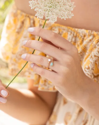 Bague ajustable Mina Amazonite & Nacre en laiton doré