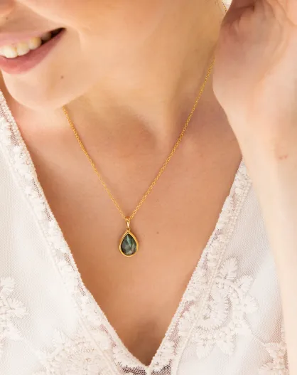 Collier Barbara Labradorite, Acqua Calci, Améthyste, Quartz rose & Pierre de Lune en laiton doré