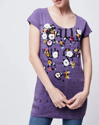 T-Shirt imprimé Gazette avec broderies et perles violet/multicolore