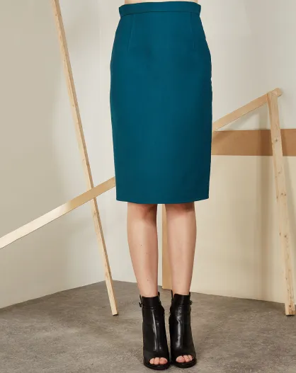 Jupe en Laine & Soie Aplomb bleu canard