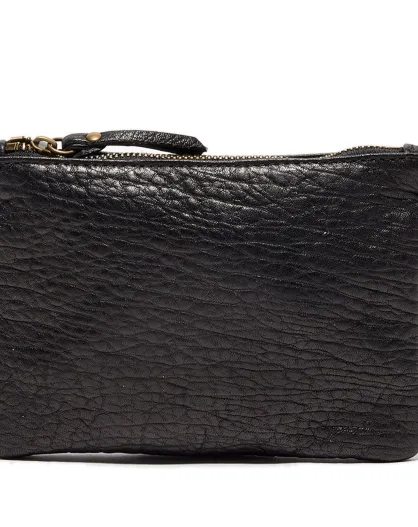 Pochette en Cuir Zipped Pouch teck - 23x15x4 cm