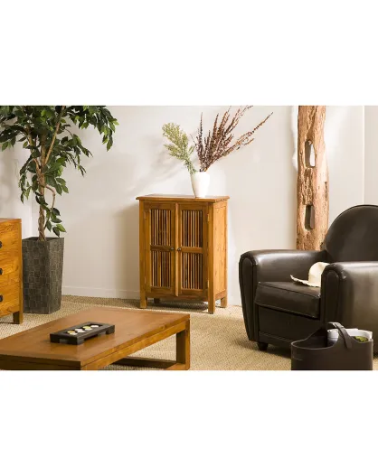 Meuble 2 portes Persiennes miel - 60x30x80 cm