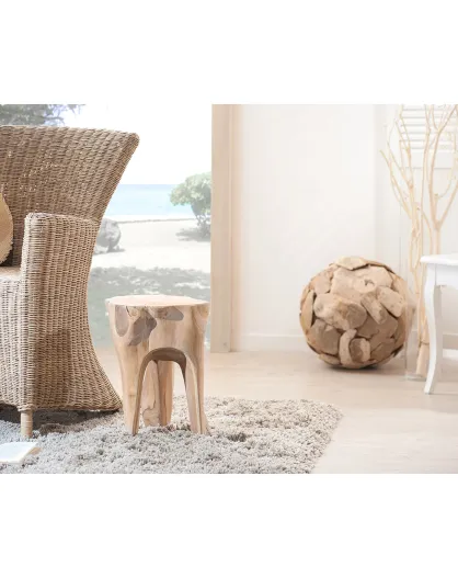 Tabouret assise amovible en bois de teck recyclé Sixtine bois - 41x41x46 cm